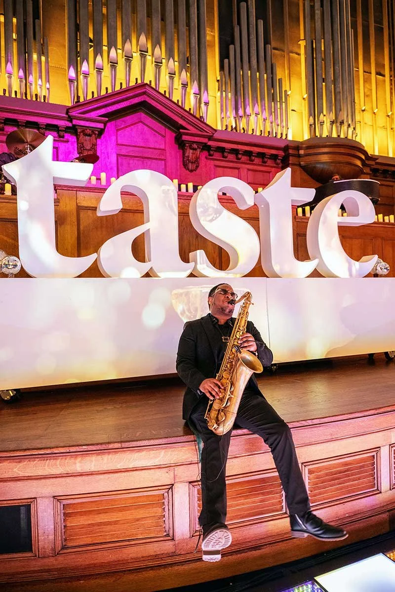 Follow the music as a roving saxophonist moves through the crowd, adding a vibrant, soulful soundtrack to evening.